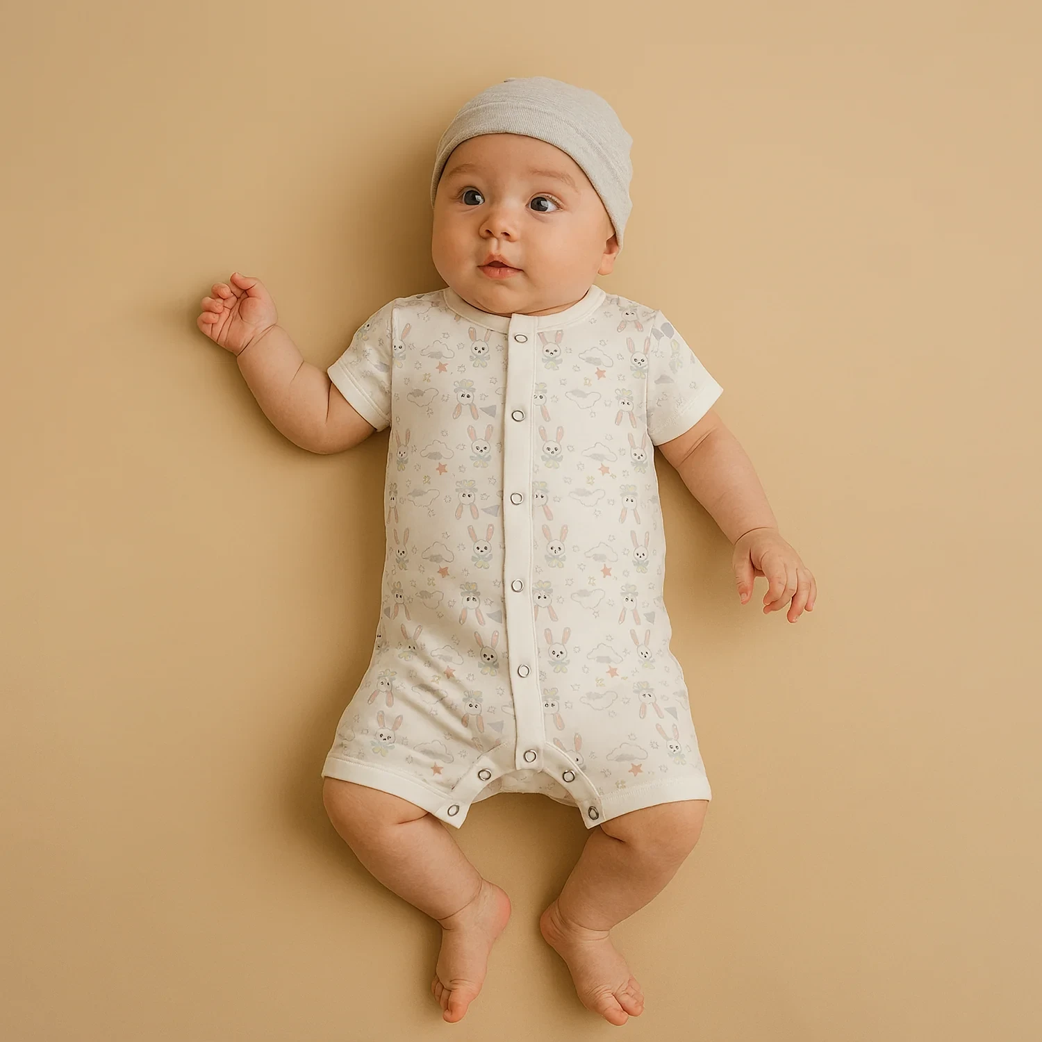 This baby cotton romper is designed for ultimate comfort and cuteness. Made from soft and breathable fabric, it keeps your baby comfortable all day long.